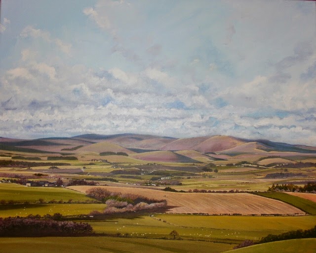 It's a massive, iconic view and there were a number of logistical problems about capturing a view at the right time of year to show the farmhouse, which is obscured by foliage on the trees in the garden during spring and summer. It was a difficult painting to create- not least because of the scale and complexity of the landscape, but also because it was commissioned and paid for by a committee- all of whom wanted the very best for the recipient, but had sightly differing views of exactly what that might be.